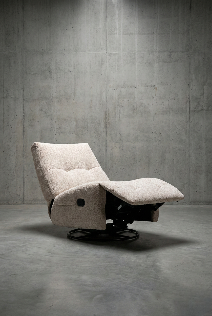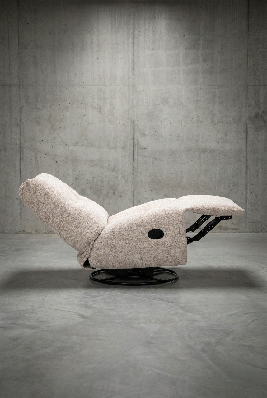 מנגנון 3 ב-1: הכורסה משלבת תנועת נדנוד חלקה ומרגיעה, אפשרות סיבוב של 360 מעלות, ומצב הטיה (Recliner) למנוחה מלאה.