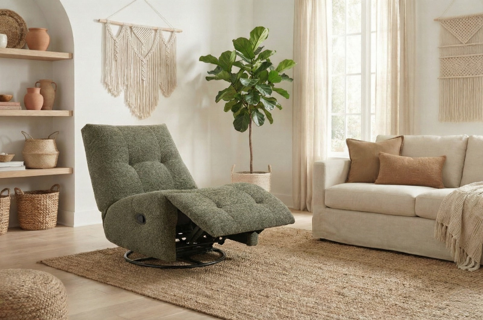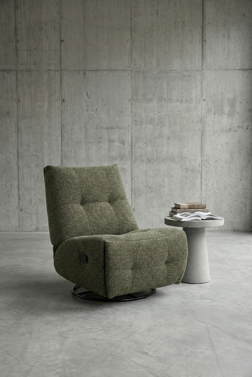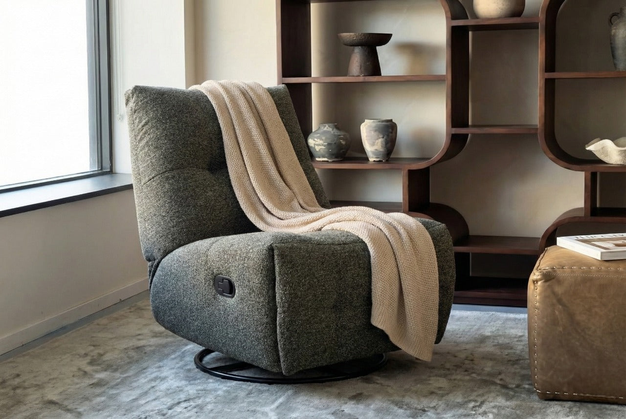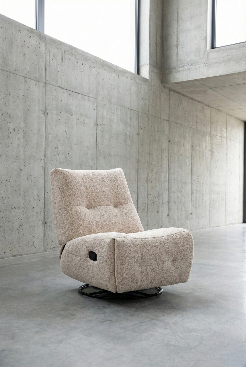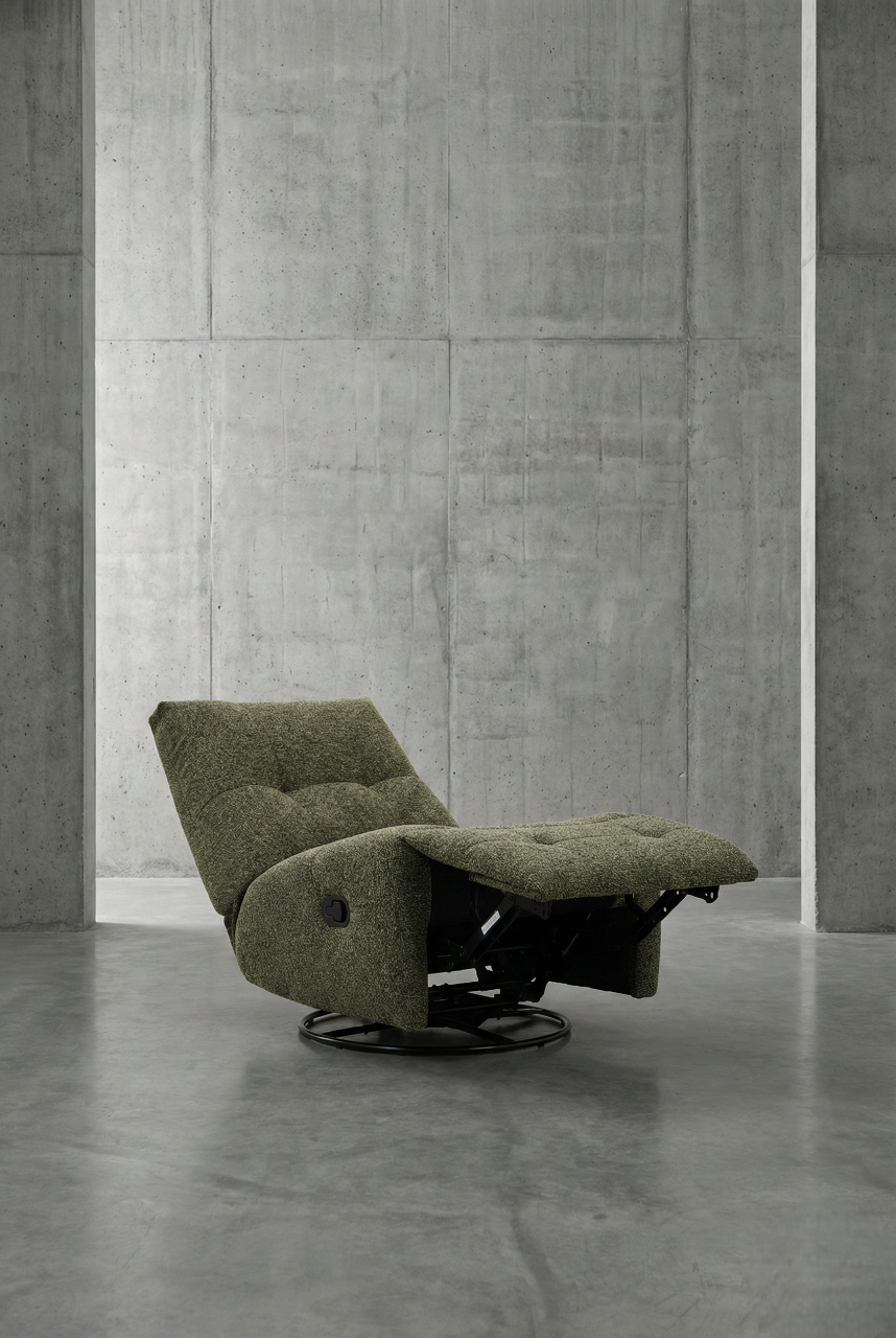 מנגנון 3 ב-1: הכורסה משלבת תנועת נדנוד חלקה ומרגיעה, אפשרות סיבוב של 360 מעלות, ומצב הטיה (Recliner) למנוחה מלאה.