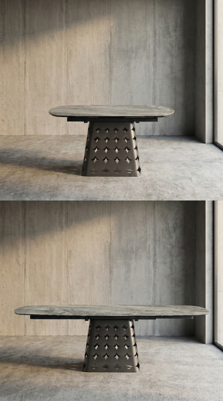 השילוב המדויק בין חדשנות טכנולוגית לאסתטיקה מודרנית פורצת דרך. שולחן ה-MAGNUS הוא יצירת אמנות דינמית המיועדת להיות הלב המעוצב של הבית. עם משטח קרמיקה מתקדמת ובסיס פיסולי בגוון ייחודי, הוא מעניק לפינת האוכל מראה מתוחכם, נקי ובלתי נשכח שמתאים למגמות העיצוב המובילות של 2026.