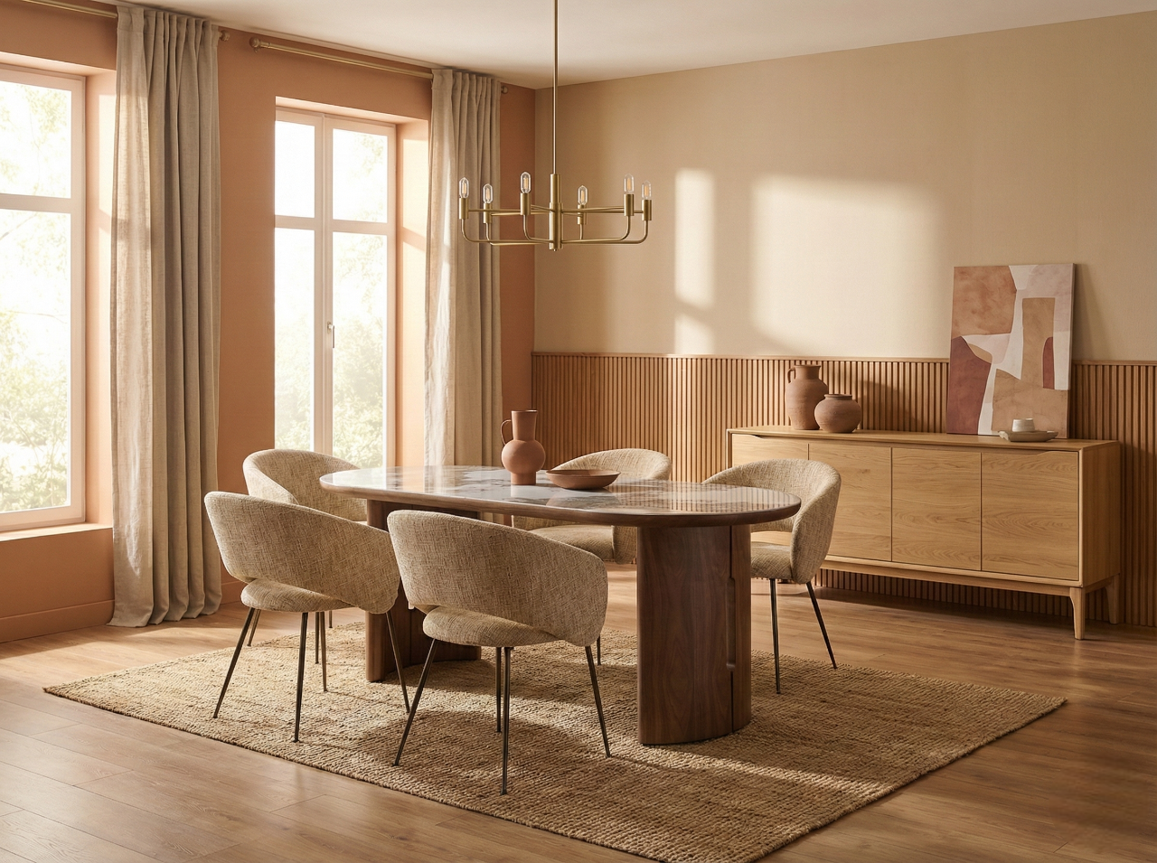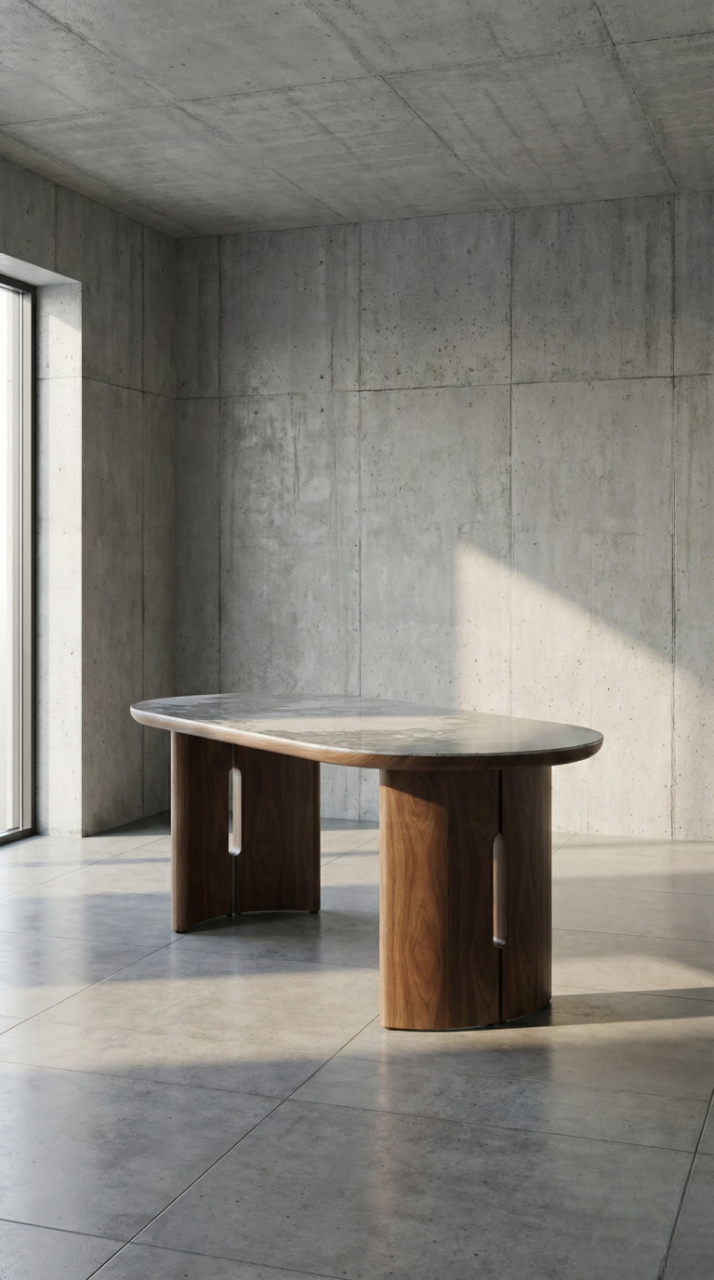ההרמוניה המושלמת בין חומרים מהטבע לעיצוב מודרני. שולחן ה-ZENITH הוא הצהרה של "יוקרה שקטה". עם פלטה אובלית המציגה טקסטורת אבן ייחודית ובסיס עץ מסיבי במבנה חצי-ירח, הוא יוצר מרכז אירוח רך, מזמין ובלתי נשכח.